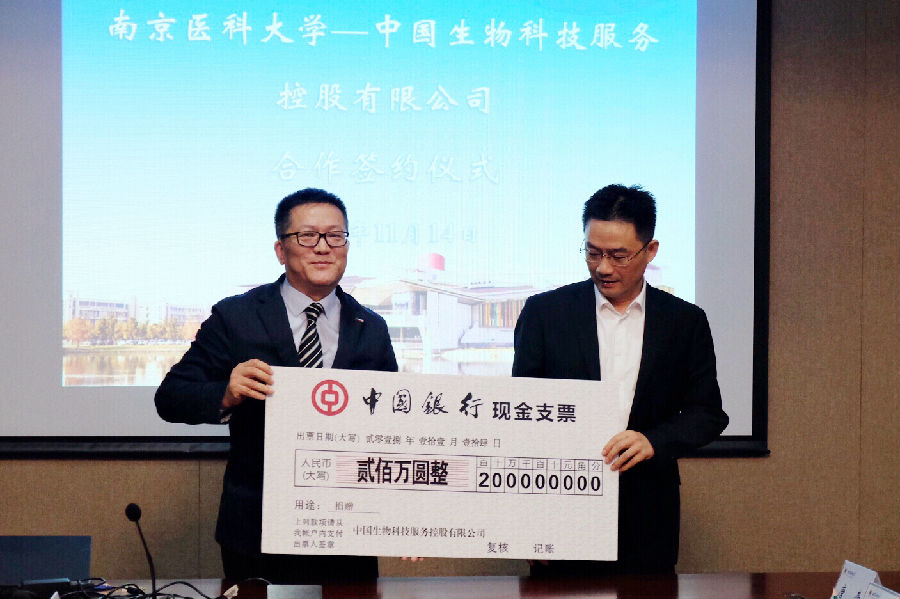 上海隆耀生物投资方中国生物科技与南京医科大学就未来的多项战略合作达成一致,并现场签订了合作协议书。