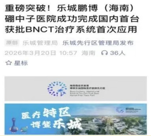 3月19日,鹏博(海南)硼中子医院成功完成了首例患者的BNCT治疗,治疗后患者恢复状况良好并顺利出院,截至目前未发生任何重大不良反应,证明了全球唯一获批BNCT治疗系统NueCure®和硼药Steboronine®在国内首次临床应用的安全性与可行性。