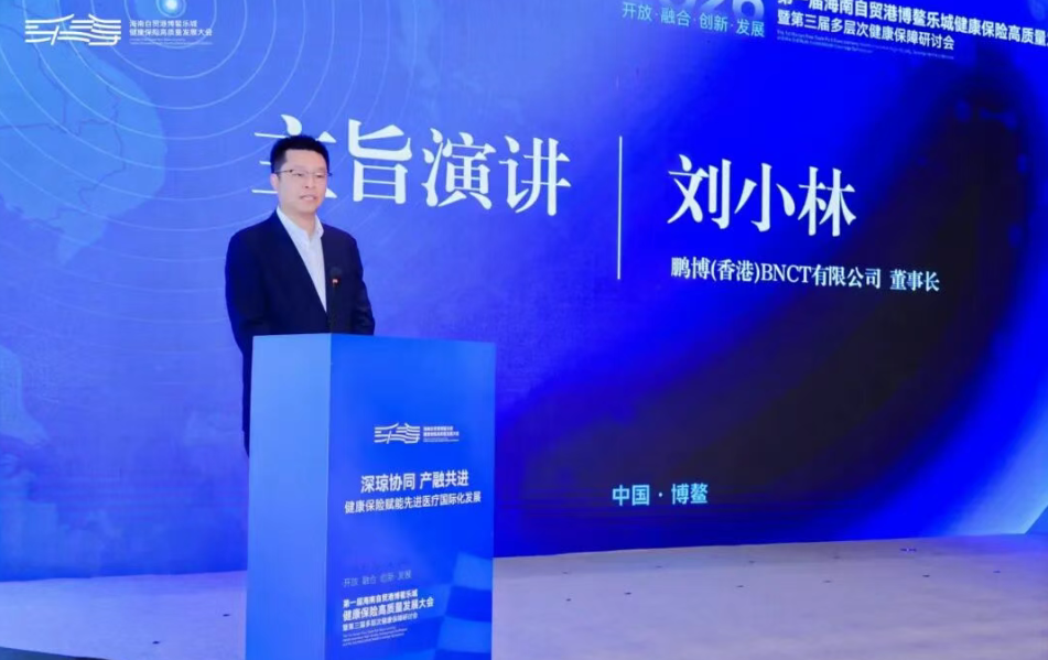 中国生物科技服务股份有限公司(08037.HK)董事会主席、鹏博(海南)硼中子医院董事长刘小林代表医院,出席分论坛并发表主旨演讲、参与圆桌对话,共同见证国内首款BNCT专项医疗保险产品的正式发布。