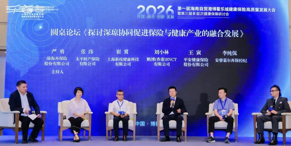 随后,刘小林董事长与前海再保险、太平财险、上海新玟健康、平安健康、Gallagher Re等机构代表,围绕深琼两地健康产业与保险融合、保险助力先进医疗技术国际化等议题展开了圆桌讨论。